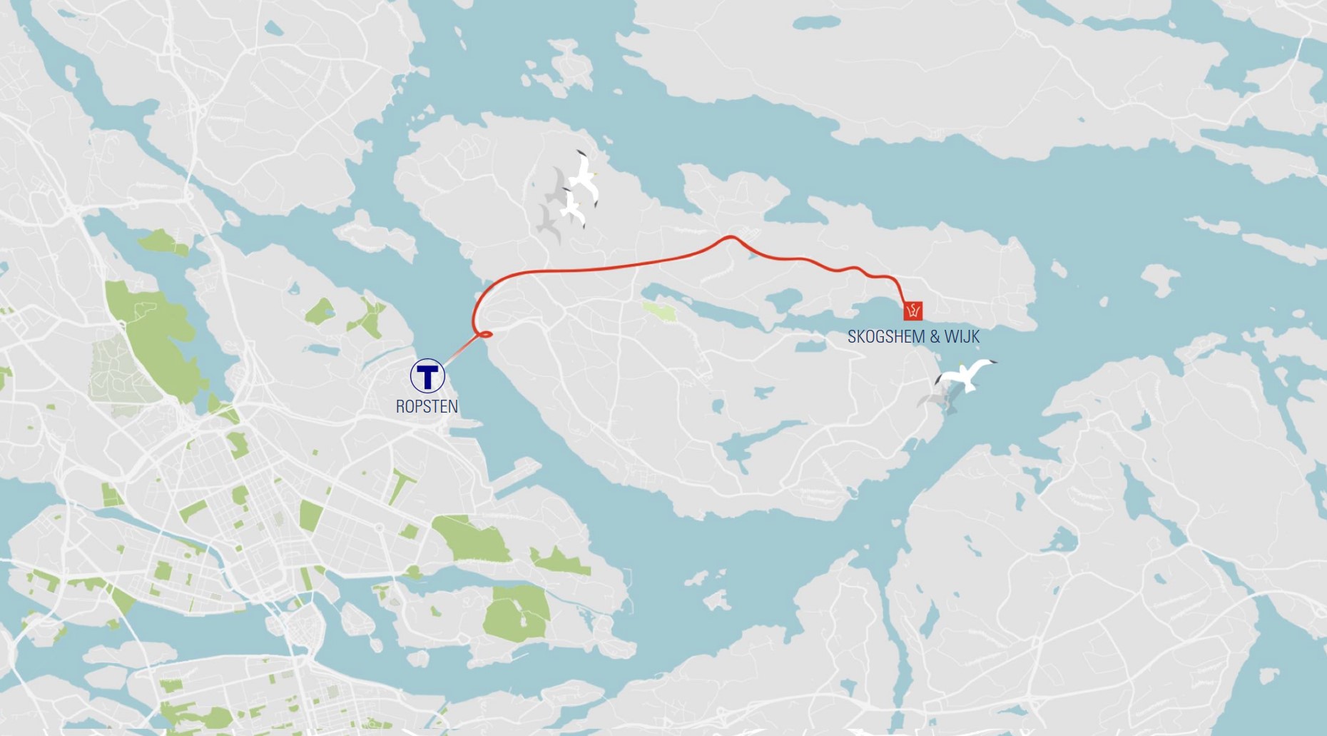 Uppskattade restider till/från: Stureplan 17 minuter, Arlanda flygplats 35 minuter, Bromma flygplats 25 minuter, Ropsten 10 minuter